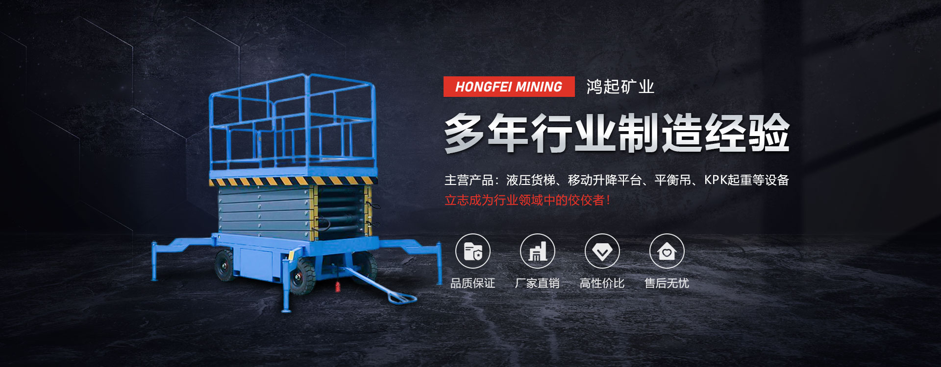 河南省鴻起礦業起重機械有限公司始建于2011年,是生產登高設備、起重機配件的廠家,先后榮獲“質量過硬放心品牌”、“AAA 級企業”、“**企業”及“質量管理**企業”等榮譽稱號。公司擁有經驗豐富的科技人員和技術隊伍,技術力量雄厚,生產設備精良,工藝**,檢測設備齊全,安全性能達標,產品輻射全國二十多個省、市、自冶區,在同類產品中享有較高的聲譽。  本公司實力雄厚、技術**,主營產品類型有(液壓、電動、手動)平臺、單雙梁起重機、門式起重機、橋式起重機、KPK起重機、液壓平衡器、防墜器、導軌式升降貨梯、液壓翻板車、電動平車、旋臂吊、平衡吊:電纜卷筒、起得機配件等非標設備制作及維修業務。本公司秉承“嚴格、踏實、上進、創新”的企業精神,不斷發展頭大,深受廣大用戶的好評和依賴。  本公司經營宗旨:“以誠為本,以信取人,以質量求生存,以信譽求民展”。  二十一世紀是知識經濟的時代,競爭與發展共存,機遇與挑戰同在,鴻起人將以朝代的科技,以國際化的服務,以國際化的質量,以敏銳的目光、昂揚的姿勢面向世界,面向一個更加廣闊的時代和未來。  實力鑄就品牌,服務創造未來,董事長段建召攜全體員工向各界朋友和新老用戶致意,熱烈歡迎各位朋友惠顧洽談業務、指導工作,共創更加美好的明天! [了解詳情]